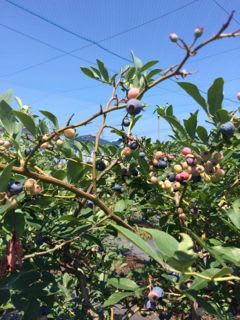 こちらの農園は、入園料はなしで採取したブルーベリーの量に応じて精算する方式。同じ木でも色が十分熟している実とそうでないものが混在しているし、さらに言うと日の当たり方のせいか、同じ木の熟した実でも甘さが違ったりする。