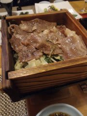 この辺でワインなどいただきながら、牛肉の温泉蒸しが出来上がるのを待つ。こちらはさすがにポン酢でいただく。
