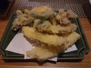 そして、続いてイワナと野菜の天ぷらが出てきたが、これもお塩でいただく。なんとも美味しいし、イワナの天ぷらがあることで満足度が違う。